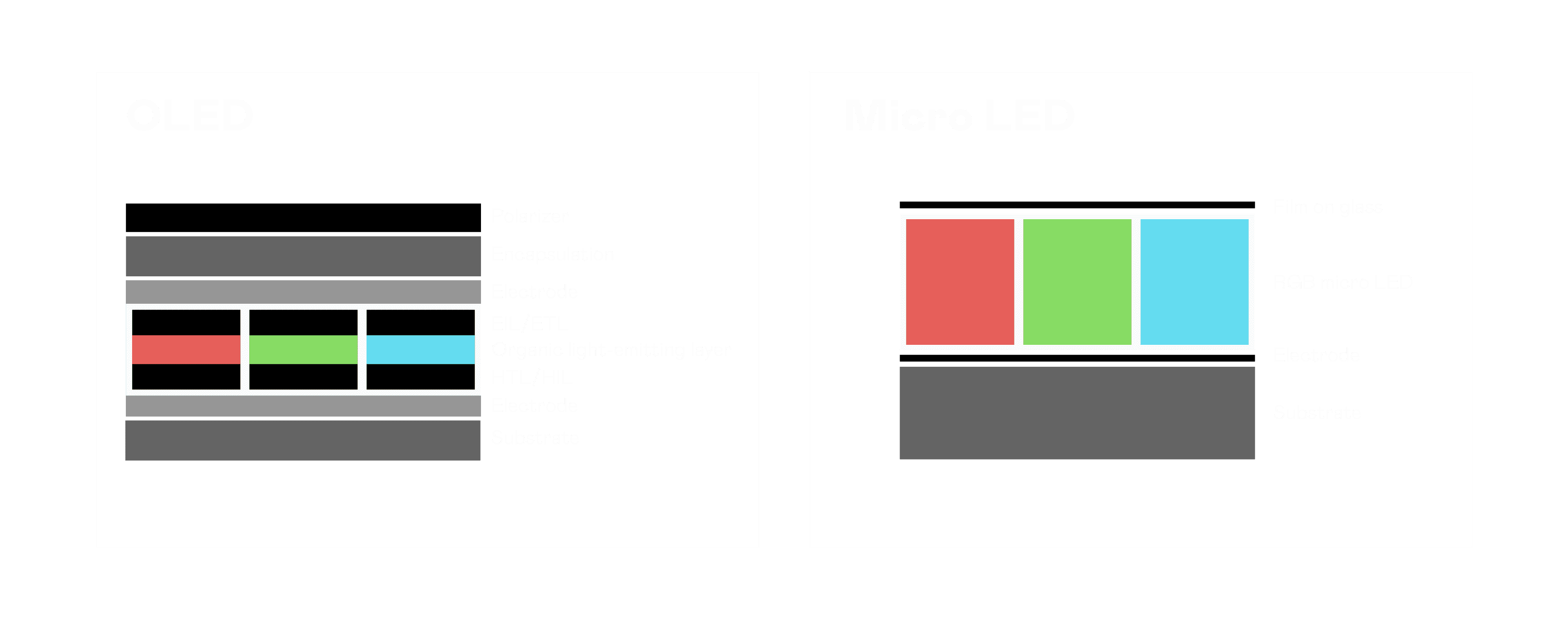以 LED 做为显示画素,,,可让 LED 的发光效率发挥到极致,,从而让显示器具备优异的亮度表现,,,不论是在户外或室内,,,均具备出众的显示效果。。。同时,,,与使用有机材料的 OLED 相比,,,LED 具备更稳定、、、、寿命更长的特性,,,不仅不会有画面烙印问题,,而且更不容易出现故障、、坏点。。。