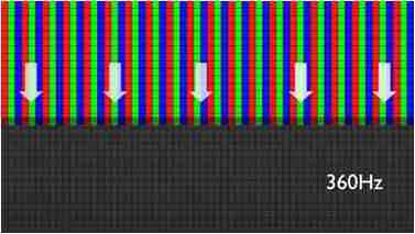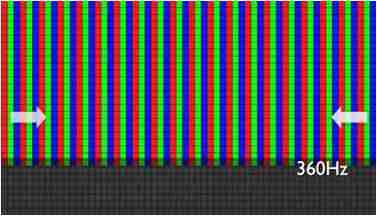 传统液晶驱动是从左到右单向进行,,在画面更新速度愈来越愈快的情况下,,位于驱动线路末端的右下角区域,,,,画素的闸极来不及在短时间内获得足够电压,,,无法显示出正确的颜色资讯。。。 |