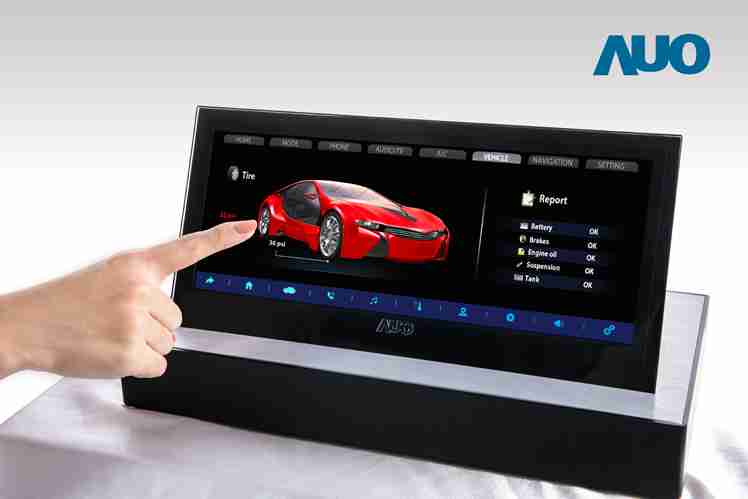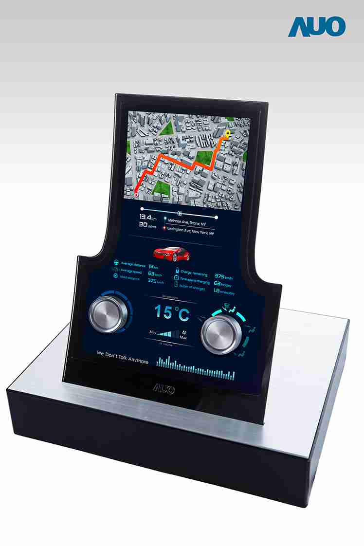 12.3 寸 Full HD LTPS 显示屏同样具备 1000 nits 高亮度,,,搭载内嵌式触控技术,,,整合驱动与触控 IC 于显示屏制程,,使显示屏厚度降低,,为中控台创造更多机构设计空间。。。应用于抬头显示器的 3寸 LTPS 显示屏具有高穿透率、、1200:1 高对比度度,,以及 297 PPI 高画素密度。。。。液晶最高可耐受到 110C 的高温 (TNI) 而不液化,,在阳光高温下维持优异稳定的显示效果。。